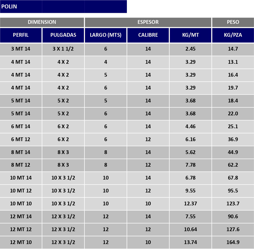 Los polines «C» al ser ligeros y resistentes son un excelente elemento estructural, utilizado comunmente en la construccion de estructuras para bodegas y naves industriales.